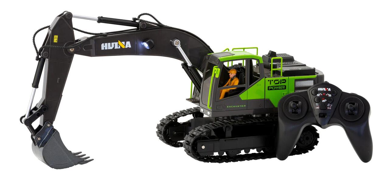Unleash the power of precision with the 1:18 Thirteen-Channel Alloy Remote-Controlled Excavator – designed for indoor action like never before! Engineered for enthusiasts and hobbyists, this robust excavator offers 13 channels of control, giving you full command over every movement, from the arm to the bucket. Made from high-quality alloy, it combines durability with sleek design, ensuring it stands up to even the most intense indoor digging operations. With realistic sound effects, working lights, and smooth operation, it’s the perfect addition to your RC collection. Whether you’re digging, lifting, or moving, this excavator brings unparalleled realism and fun to your indoor RC experience. Get ready to dig deep and command with precision.Features:1:18 scale remote-controlled excavator13-channel full-function control including arm and bucket movementCan move forward,backward, left and rightHas light and auto demoWith sprayfunctionMade from high-quality alloy for durability and strengthRealistic sound effects for immersive playWorking LED lights for added realismSmooth, responsive operationIdeal for indoor usePerfect for RC enthusiasts, hobbyists, and kids aged 8+Specifications:Dimensions:43 x 22 x 15cmWeight: 1.6kgColour: GreenBattery: 3.7VFrequency: 2.4GHzInclusions:Remote controllerUSB-A charging cableWater dripper bottleInstructions printed on the box
