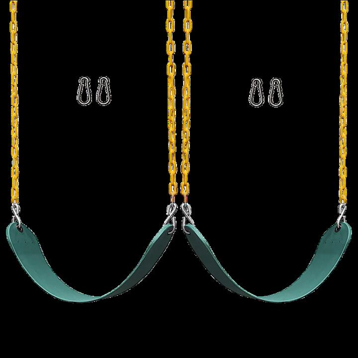 Let your kiddos go wild in these jungle gym swings by Randy Travis Machinery. These playground-style swings will make your home the hit of the neighbourhood when you install them in your backyard. These two sling-type swings are fully assembled for your convenienceand ready to install! They attach easily to most swing hangers (not included). Install them on the porch, on your existing playset, or even on a tree in your backyard.Designed with an eye-catching yellow plastisol coating to prevent finger pinches, these sturdy 2/0 zinc-plated chains should last for years. The copolymer plastic seat is both comfortable and safe. With their 300-pound weight limit, even the grownups can get in on the action. Enjoy hours of family fun with these rugged swings. Use them with low-friction swing hangers for maximum safety and enjoyment.Mix and match them with your other playground equipmentfrom trapeze bars to rope swings to toddler bucket swings for the little ones. When you turn your backyard into your kids’ favourite playground, your home will become the favourite place for the neighbour kids to hang out. Buy yours today.Features and specifications:Chain length: 167.6cm with 76.2cm plastisol coatingSeat dimensions: 63cm x 14cmWeight: 5kgMaterials: Metal, zinc plating, copolymer plastic, and plastisol coatingSnap hooksSet of 2Recommended for ages three and upNote: COM (change of mind) Return Policy: The product must be unopened and in brand new condition, with the return to be organised by the customer. Once received and verified to be in the condition specified, refund is only of the item value minus 15% restocking fee (not including initial shipping). An additional return charge, which is same cost as that of initial shipping, will be deducted from the refund on returns due to delivery failure caused by customer error. For the health and safety of our staff and other customers, we are unable to accept returns of personal use items.