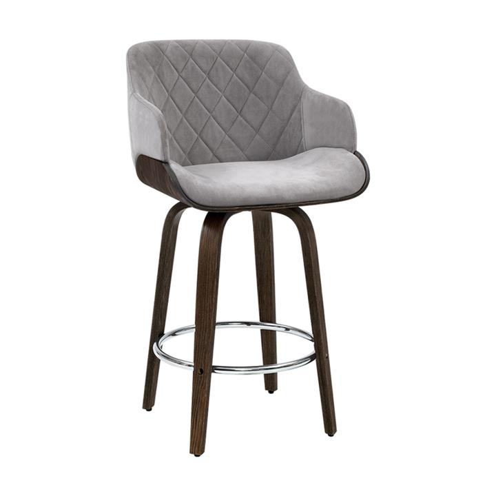 Wood, metal and velvet create a bar stool fit for royalty! Meticulously crafted with solid wood, this bar stool feature a generous puckered velvet seat and backrest that feels comfortable and looks regal. The contoured backrest provides support while the anti-slip rubber pads at the bottom of the legs remain firm and stop scratches appearing on your floor. Lastly, the chrome footrest rectangle lets you perch in style and in comfort. Features Solid plywood Durable velvet fabric Thick foam padded seat Contoured backrest 360 Degree rotatable seat Chrome footrest Anti-slip rubber feet Easy assembly Specification: Seat material: Velvet Footrest material: Chrome Overall height: 96cm Seat width:52cm Seat height:70cm Colour: Grey Weight capacity:150kg Product content: 1 x Bar stool 1 x Assembly Manual