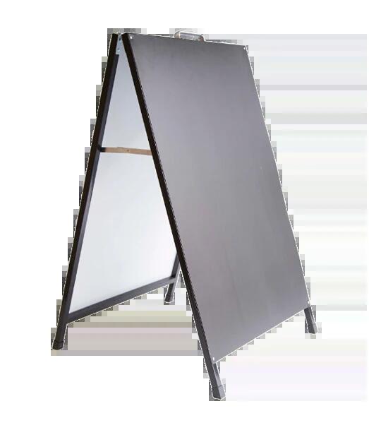 600x900mm Blackboard A-Board with Black Steel Frame- Durable, portable and user friendly- Powder coated black frame to keep rust free- Gloss black Aluminum panel for liquid chalk writing