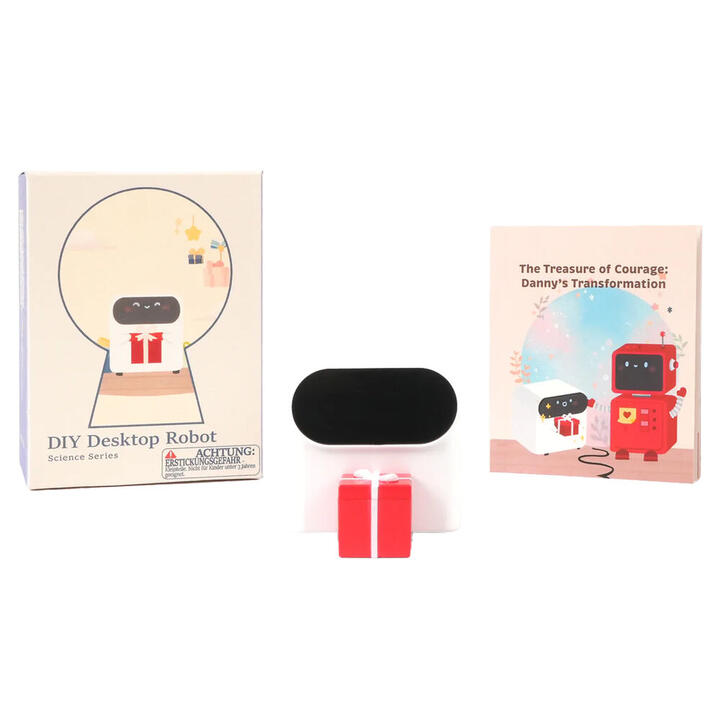 DIY Desktop Robot. DecoFunPlay. The DIY Desktop Robot is a tiny, interactive companion that brings fun to any desk. With a glowing LED face and smart tracking skills, Danny follows the path you draw, creating endless playful adventures. This miniature robot uses magnetic sensing to stay on track, stopping with a smile when he reaches his treasure. Whether navigating a maze or exploring your workspace, he turns any surface into a fun challenge.