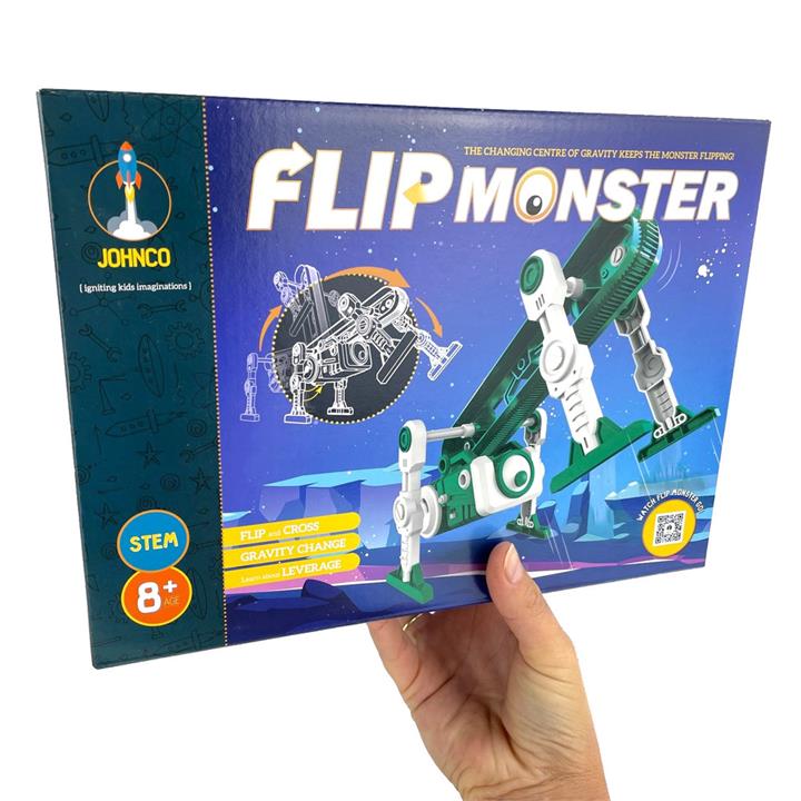 Flip Monster Gravity Robot. JohnCo. Build your very own rotational Flip Monster that changes its centre of gravity as it moves along. Watch it track forwards in its own oval orbit, leveraging its feet to lift up and flip in a continuous, uninterrupted cross-motion! Set up a small obstacle course and watch as your monster move effortlessly across small gaps or up and down steeped surfaces.