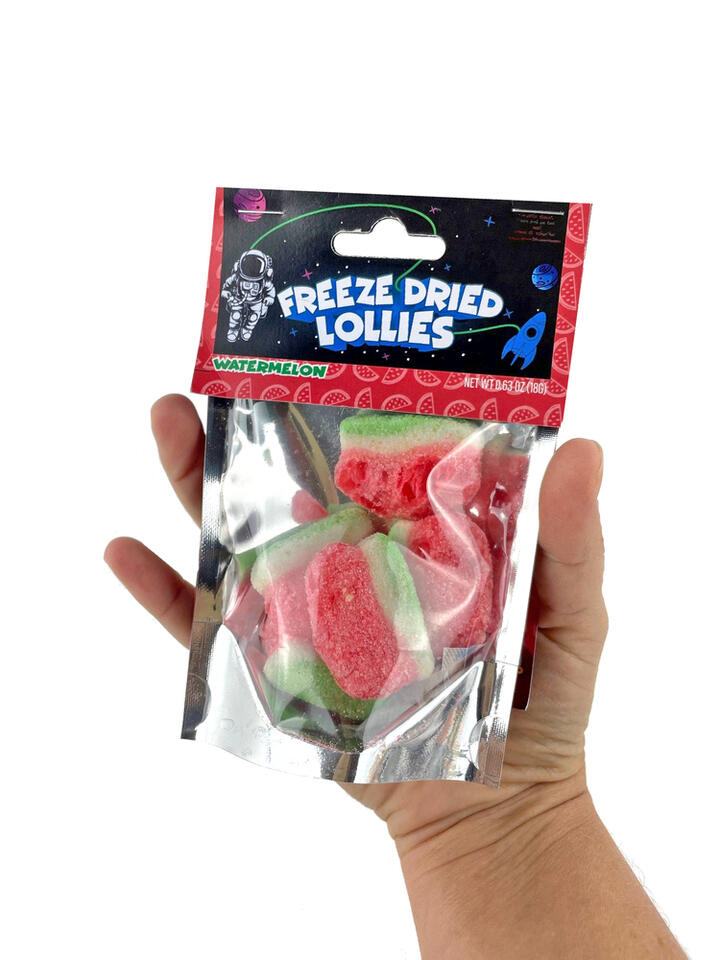 Freeze Dried Candy Sour Watermelon Mini Pack 18g. Freeze Dried Lollies. Enjoy a fun, crunchy twist on classic sweets with this Sour Watermelon Freeze-Dried Candy Mini Pack. Each piece has a light, crisp texture that makes snacking extra enjoyable, while the sweet and tangy watermelon flavour comes through beautifully. The gentle drying process used for these treats helps create their airy crunch and keeps the flavour deliciously vibrant. Perfect for anyone who loves fruity, fun candy in a convenient mini pack. Fun, crunchy twist on classic sour watermelon candy Light, airy texture that melts and crunches in every bite Sweet and tangy watermelon flavour that stands out Convenient 18g mini pack great for snacking or sharing Perfect treat for sour candy lovers of all ages Eye-catching candy thats great for gifts, party bags or movie nights