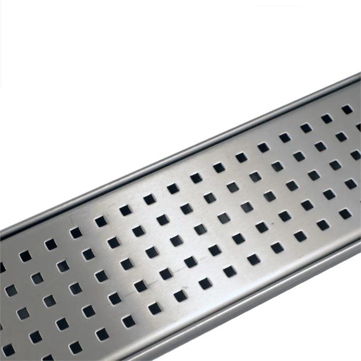 This shower/channel grate from Shower Grate Shop has a stylish geometric design top with punched square drainage holes. It’ complements square styled bathware and modern bathrooms. Its heavy duty high quality stainless steel offers superior load strength which is important in traffic areas. This shower grate is custom made to order to your exact specifications entered below. Geo Top Shower Grate/Channel This shower/channel grate has a simple yet bold geometric styling on its removable tray insert to complement any modern bathroom decor. It is also often used as a barrier drain on balconies. There are no plastic parts and it is made for heavy traffic. Any length, any outlet position! Set your exact requirements for width, length, outlet position and size for a perfect fit and easily integrated custom shower grate. Full 316 stainless steel – marine grade Clean modern look – shower grates are the new minimalist look Save on installation – this is a simpler option than a centre waste which requires four falls and many tile cuts The 22mm depth is one of the shallowest in the market for installation in most spaces Lifetime warranty from Shower Grate Shop Premium Specifications Made to measure in Australia 316 stainless steel for lifetime durability No plastic parts Three widths available (55mm, 90mm, 115mm) 22mm deep (50mm deep option for 90mm width) Outlet in any position and 5 outlet diameter sizes Fully Watermark Licensed for ATS 5200.040:2005 Lifetime Warranty