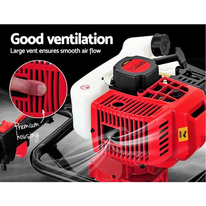 Say good bye to backbreaking manual post boring and digging and welcome to the technological breakthrough GIANTZ 92cc Petrol Post Hole Borer/Digger. The GIANTZ Post Hole Borer/Digger is geared up to do simple post boring as well as serious deep hole boring. Its class-leading 92cc 3kW 2-stroke petrol engine revs up to 9000rpm to get your hole dug out with precision and ease. The advanced vertical gearbox design also allows for better efficiency and reliability with the motor. Featuring a solid 20mm auger mount, the GIANTZ Hole Borer/Digger allows the reinforced augers and extensions to connect securely to break hard ground with minimum fuss. In fact, you can bore to as deep as 3m which is more than suitable for most jobs. The three different widths choice blades are interchangeable with the three extension options which definitely augur well for any job with various requirements. With regard to its operation, the GIANTZ Hole Borer/Digger offers a smooth start with consistent digging/boring power, coupled with quality rubber hand grips for relatively stress-free handling. So whether you're digging holes for fence posts, decking supports, plumbing or even planting trees, the GIANTZ Hole Borer/Digger is your ultimate borer and digger hands down. Features: Exclusive 92CC pro-series model Heavy-duty sturdy steel construction Easy start up; fast responsive engine Advanced vertical gearbox design Quality rubber hand grip Easily attach and detach blades Efficient and reliable Comes with 1 x 80cm & 2 x 60cm extension Comes with a mounting kit & a safety pack Comes with detachable blade (only for 100mm and 200mm auger) Specifications: Engine: 92CC Engine type: Single cylinder, air-cooled, 2-stroke Auger material: 65Mn steel Ignition system: C.D.I. Rated output power: 3.0KW Gasoline vs. 2 stroke oil mixture ratio: 25:1 Fuel tank capacity: 1.2L Maximum engine speed: 9000 ? 500RPM Auger length: 1m Auger size: 100mm, 200mm, 300mm Extension shaft: 60cm, 80cm in length Max depth: 3M Product Contents: 1 x 92CC Engine 1 x 80cm Extension 2 x 60cm Extension 1 x 100mm Auger 1 x 200mm Auger 1 x 300mm Auger 1 Set x Mounting Kit 1 Set x Safety Pack 1 x User Manual