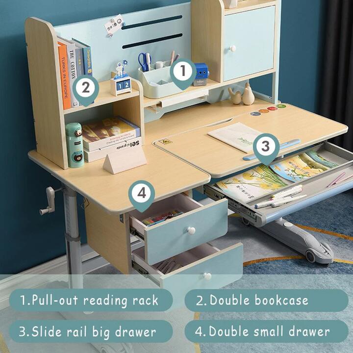 Description This Ergonomic Multi-Function kid’s desk can be your child’s ideal learning partner! This Kids writing table is made of solid rubber wood, with wood grain surface, height is adjustable from 55-75 cm for the desktop with locking rotary knobs to grow with your child. And the desktop can be tilted from 0-65angle to protect their eyesight and being Drafting Table. Kids can store their various stationery on the extra bookshelf or in the embedded pull-out drawer. The rotatable rack offers a proper distance and angle for reading books. Features -Adjustable Height: The height of this learning desk can be adjusted to keep up with your fast-growing kids. You can rotate the knob on the table legs, move the table up or down, and then lock the knob to keep it stable in the regulated position without shaking and tilting. -Tilted Desktop: The desktop and bookshelf can be tilted between 0 and 65 degrees, which will provide the best angle for writing, reading, drawing and so on. -Multi Function Designed: This kid’s table is designed with a Bookshelf, Hutch, Drawer, Book Holder, which offers extra storage space and address all the needs. -Humanized Design: Featuring an embedded pull-out drawer, this learning desk with large space can store notebooks, pens, papers, utensils or other stationeries. And the desk has a thoughtful hydraulic rod, which can effectively buffer the falling speed of the tabletop. -Perfect Gift for Children: Natural material, health and environmental concerned. With a spacious desktop area, this table allows kids to place a variety of essentials at hand, creating a better learning environment . It can help kids protect their eyesight, and accompany him or her growth all along. Specification Bookshelf size: 112CM(Length)*50CM(Height) Table size: 120CM*60CM*55-75CM(Adjustable) Chair size: 55CM*48CM*30-60CM(Cushion)70-100CM(Backrest)(Adjustable) Desk material:Solid Rubber Wood Metal Type: iron Color: Blue, Pink Suitable for the crowd: Children/ Teenagers Package 1x kids study desk(3 cartons) carton 1: 126 x 69 x 14cm, weight: 25kg carton 2: 43 x 39x 35cm, weight:5kg carton 3: 74 x 68 x 16cm, weight: 11kg 1xkids study chair Package size: 62x57x32cm, weight: 15kg (Specific package item depend on the options) Note:Whole set includes desk, shelf, detachable book/tablet stand, chairOne Year Warranty and price is GST includedWe have plenty of spare parts, we will send you any broken/faulty part for free within warranty. You don’t need to return the faulty part. We have technician to solve any problem you haveOn Site assemble service is available in Sydney. Please enquire for fee and detailsWe accept Change of Mind returns for 14 days after you have received the item in cases where you have changed your mind or made an incorrect purchase and wish to return the product. This also applies to orders cancelled when the item has already been dispatched from our warehouse. The item must be in a re-saleable condition to qualify for a change of mind refund. Deductions may apply including Initial and Return Shipping, as well as restocking fee of 20% of the product price Delivery excludes the following postcodes:2880-2889, 5201-5749, 4309-4453, 4580-4693, 4454-4499, 4694-4802, 4804-4805, 9920-9960, 4803, 4806-4999, 9961-9998, 2648, 2715, 2717-2719, 2731-2739, 3221-3334, 3342-3349, 3351-3352, 3357-3426, 3444-3688, 3691- 3749, 3812-3909, 3921-3925, 3945-3974, 3979, 3984-3999, 2264-2281, 2311-2484, 2487-2499, 2533-2554, 2575-2599, 2621-2639,2642-2647, 2649-2707, 2710- 2714, 2716, 2720-2730, 2787-2879, 6215-6700, 6701-6797, 7020-7049, 7054, 7109-7150, 7155-7171, 7173-7247, 7255-7257, 7330-7799If your postcode is within the above ranges then please contact us for a postage quote.