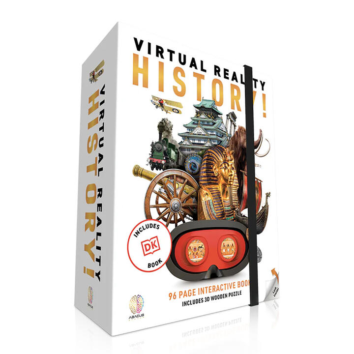 History Virtual Reality Deluxe Gift Set. Abacus Brand. Step into history with the History Virtual Reality Deluxe Gift Set! This incredible set includes a 96-page illustrated DK book, 25 immersive VR experiences, and high-quality VR goggles. It's the perfect gift for history enthusiasts of all ages! Explore pivotal moments, meet iconic figures, and journey through ancient civilisations with the detailed DK book as your guide. The VR headset brings these historical events to life, offering an engaging and interactive learning experience.