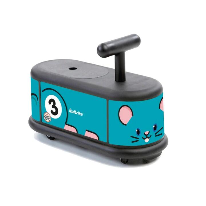 La Cosa 1 by Italtrike is the best ride on for children to move around on all smooth surfacing indoor and outdoor, even in small spaces like under the kitchen table.They will ride around in a simple and intuitive way, experiencing balance on their first 4-wheeled toy. For children from 1 year up to 6 years old. La Cosa has been conceived and designed to learn how to coordinate movements while playing. Children learn in complete safety to steer left and right with body movements, using their feet and legs to push and stop. It has very silent wheels, a secret compartment under the seat where you will find whatever you use every day, like your cars keys. La Cosa 1 is made of a recycled and recyclable plastic polymer. It is the perfect ride on for children’s growth. Many nice little animals to support them in their psychomotor development.