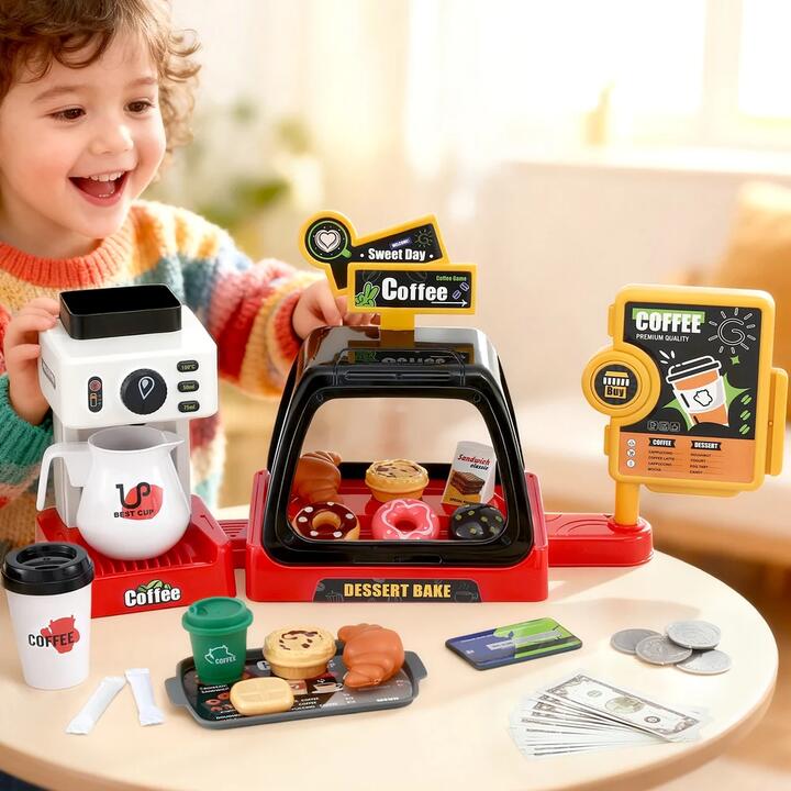 This comprehensive kids pretend play coffee shop set is the perfect recipe for hours of imaginative fun. Watch as your child’s creativity and confidence blossom while they take orders, making coffee with the realistic coffee machine toy, and serve up delightful treats to their happy customers.This is also one of the most engaging educational toys you can find. As children interact with the cash register and play money, they get a fun introduction to basic math and financial literacy. Handling the play food accessories and operating the machine helps develop crucial fine motor skills and hand-eye coordination.Our playset is made from non-toxic, durable plastic designed for long-lasting use. It’s the perfect gift for children aged 3 years and above, encouraging social interaction and cooperative play among friends and siblings. Please note, adult supervision is recommended at all times to ensure a safe play environment.Add this delightful kids pretend play coffee shop to your cart for endless fun and learning!FeaturesPerfect gift for kids and friendsMade of durable plastic for long lasting useRole-play and the fun experience of making coffeeLearning the concept of moneyRecommended age 3 years aboveAdult supervision recommended at all timesSpecifications:Material: PlasticBattery required: 2 x AA (not included)Product care: Wipe with a clean cloth occasionallyOverall size: 44X13X20CMColour: MulticolourAssembly required:YesNumber of package : 1Package ContentKids Coffee Shop Pretend PlaySet x1Manual x1This product comes with 1 year warranty