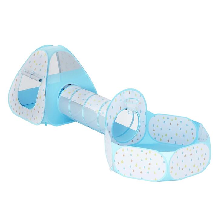 Give your children the gift of creativity and imagination with the Keezi 3-in-1 Kids Playhouse! This amazing playhouse comes with a wide variety of activities to keep your children occupied, but it is also designed with convenience in mind. It features a foldable design that fits neatly into the included carry bag, making it easy to set up and store away. Made from durable polyester fabric, the playhouse is designed to last long hours of play both indoors and outdoors. It features a ball pit with a fun basketball hoop, a fun crawl tunnel. Easy to store, clean and maintain, you and your kids will love the convenience and flexibility of the Keezi 3-in-1 Kids Playhouse!FeaturesFoldable designBasketball hoopCrawl tunnelEasy storage and cleanCarry bagPerfect for indoor or outdoorSpecifications:Brand: KeeziMaterial: 190T polyester fabricPlayhouse Dimensions: 80cm x 80cm x 100cm (L x W x H)Crawl Tunnel Dimensions: 113cm x 46cm x 46cm (L x W x H)Ball Pit Dimensions: 80cm x 107cm x 36cm (L x W x H)Colour: BlueAge Range: 3 years +Assembly required: YesNumber of packages: OnePackage ContentKeezi Kids 3-in-1 Play Tent x1Carry Bag x1Manual x1This product comes with 1 year warranty