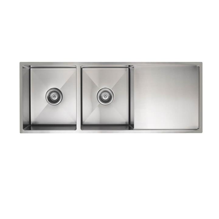 Meir MKSP-D1160440D Drainboard Sink This innovative Meir sink with drainer is made from ultra-premium 304 stainless steel, finished with PVD brushed nickel and nano coating technology for long life use. This drainboard sink allows you to fully use both bowls for washing and food preparation. The angled design means the water from dishes and plates can drain quickly into your sink. MAXIMUM DURABILITY – Made from ultra-premium 1.5mm-thick stainless steel with PVD coating to withstand heavy use and extreme temperatures ADVANCED NANO TECHNOLOGY – Makes the sink’s surface oil-proof and bacteria-free CONVENIENT DRAINBOARD – Built with a smart sloped drainer that can be used to hold handwashed items, fruits, vegetables, cutting board, or a dish draining rack MINIMALIST – Brushed nickel is a versatile finish that complements most kitchen designs EASY DRAINING – X-flume design facilitates quick flow and to avoid standing water in the bottom of the sink NOISE-FREE – Soundproofing rubber dampening pads reduce noise while washing – now you can enjoy peace and quiet in the kitchen Specifications Model: Meir MKSP-D1160440D-NK Material: 1.5mm-thick (16-gauge) 304 stainless steel Finish: PVD brushed nickel Coating: Nanocoating technology Anti-Scratch: No Edge-to-edge Dimensions: 1160 x 440 x 230mm (W x D x H) Drainboard Dimensions: 415 x 400mm (W x D) Bowl Dimensions: 340 x 400 x 230mm (W x D x H) Bowl Capacity: 62L in total Bowls: Double Reversible Drainer?: Yes Inner Corners: Soft round (R10) Sink Hole: 90mm standard waste (included) Mounting: Top/flush/undermount Bench should only be cut once the sink is on-site and used to confirm the cut requirements Manufacturer Warranty: 15 years for sink (1 year for parts)