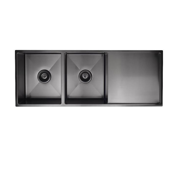 Lavello Nano Coated Stainless Steel Kitchen Sink – 1160 x 440mm Double Bowl with Drainer – Top/Under Mount – PVD Gunmetal Black