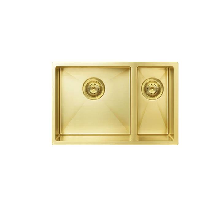 Meir MKSP-D670440 Lavello Handmade Kitchen Gold Sink Meir has produced some of the most sought-after ultra-premium kitchen sinks available. They are applied with nano and PVD coatings for enhanced durability. This range has one larger bowl that offers ample space to work with. It can be used as a decorative centerpiece because of its brushed bronze gold finish. Ultra Premium PVD Brushed Gold Kitchen Sink MAXIMUM DURABILITY – Made from ultra-premium 1.5mm 16 gauge 304 stainless steel with PVD coating to withstand heavy use and extreme temperatures ADVANCED NANO TECHNOLOGY – Sink’s surface is constructed with cutting-edge nanotechnology to make it oil-proof and bacteria-free ELEGANT – Beautiful brushed bronze finish gold adds a touch of luxury to your kitchen NOISE-FREE – Soundproofing rubber dampening pads reduce noise while washing – now you can enjoy peace and quiet in the kitchen FLEXIBLE CONFIGURATION – Gives the option of topmount or undermount, with clips and templates included for ease of installation Specifications Model: MKSP-D670440-BB Material: 1.5mm-thick (16-gauge) 304 stainless steel Finish: PVD brushed bronze gold Coating: Nanocoating technology Anti-Scratch: No Edge-to-edge Dimensions: 670mm x 440mm x 200mm (W X D x H) Bigger Bowl Dimensions: 400mm x 400mm x 200mm (W X D X H) Bigger Bowl Capacity: 32L Smaller Bowl Dimensions: 200mm x 400mm x 200mm (W X D X H) Smaller Bowl Capacity: 16L Bowls: 1 & 1/2 Inner Corners: Soft round corners (R10) Sink Hole: 90mm standard waste; removable strainer included Mounting: Top/flush/undermount IMPORTANT: Bench should only be cut once the sink is on-site and used to confirm the cut requirements
