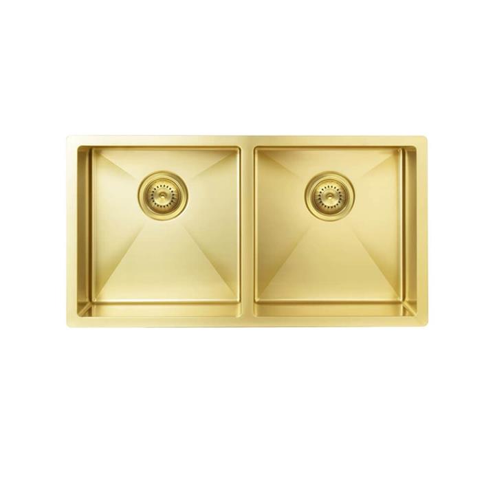 Meir MKSP-D860440 Double Bowl Kitchen Sink Luxury stainless steel sinks produced by Meir combine innovation with fashion for the kitchen. The sink is made from ultra-premium 304 stainless steel, and finished with PVD brushed bronze gold and nano coating for easy clean and long life use. Design excellence award from Architectural MasterPrize ensures you get a superior craftsmanship sink for your kitchen. MAXIMUM DURABILITY – Made from ultra-premium 1.5mm 16 gauge 304 stainless steel with PVD coating to withstand heavy use and extreme temperatures ADVANCED NANO TECHNOLOGY – Cutting-edge nano-technology makes this sink oil-proof and bacteria-free ELEGANT – Beautiful brushed bronze gold finish adds a touch of luxury to your kitchen SLIMLINE – Round softened corners provide a sleek look and also prevent residue build-up EASY DRAINING – X-flume design facilitates quick flow and to avoid standing water in the bottom of the sink NOISE-FREE – Soundproofing rubber dampening pads reduce noise while washing FLEXIBLE CONFIGURATION – Gives the option of topmount or undermount, with clips and templates included for ease of installation Specifications Model: Meir MKSP-D860440-BB Material: 1.5mm-thick (16-gauge) 304 stainless steel Finish: PVD brushed bronze gold Coating: Nanocoating Anti-Scratch: No Edge-to-edge Dimensions: 860 x 440 x 200mm (W x D x H) Bowl Dimensions: 400 x 400 x 200mm (W x D x H) Bowl Capacity: 75L in total Bowls: Double Inner Corners: Soft round (R10) Sink Hole: 90mm standard waste; removable strainer included Mounting: Top/flush/undermount Bench should only be cut once the sink is on-site and used to confirm the cut requirements Manufacturer Warranty: 15 years for sink (1 year for parts)