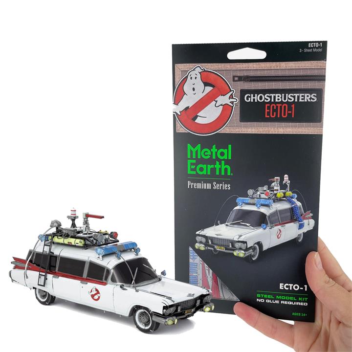 Metal Earth ICONX Ghostbusters ECTO-1 Model. Metal Earth by Fascinations. Introducing the Metal Earth ICONX Ghostbusters ECTO-1 Model – the ultimate vehicle for busting ghosts and cruising the streets of New York City! Crafted from ultra-thin steel sheets, snap out the detailed pieces and connect them using the tab and slot design – no messy glue or fiddly soldering required. Your museum quality miniature model is perfect for advanced model builders, and a wonderful gift for fans who'd love to collect the Ghostbuster's trusty vehicle!