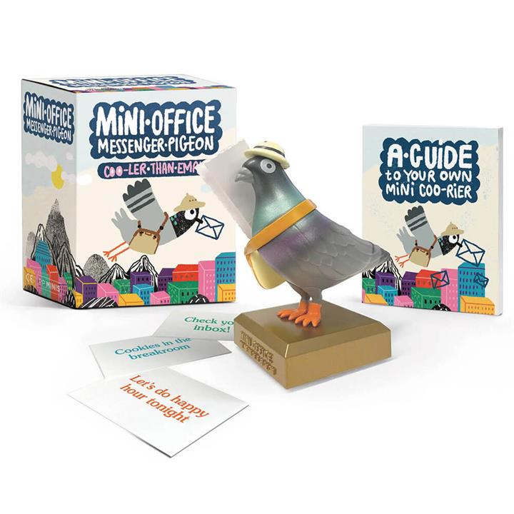 Mini Office Messenger Pigeon Mini Kit. Running Press. Meet the Mini Office Messenger Pigeon Mini Kit! Swap emails for this unique 7.62cm vinyl pigeon, the perfect desk accessory. Comes with a mini book filled with fun facts about messenger pigeons and 50 pre-printed and blank message slips. Ideal for gifting to friends, family, and co-workers. Order now to add a fun twist to your office communications!