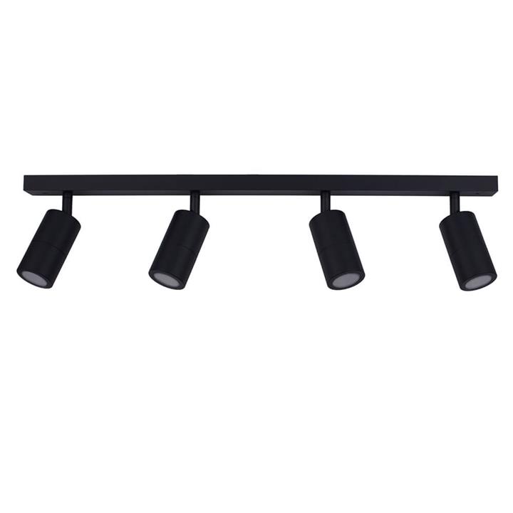 Contemporary 4 Light Directional Spot Light This Matte Black Multiple Spot Light is built with 4 fully adjustable LED GU10 lamp holders. It can be installed in ceilings as ambient or accent lighting over your kitchen bar, study areas or patios. Perfect as a light-directing fixture with 90 degree tilt and 270 degree swivel, allowing you to direct lights to beautiful elements at home. This 4-head directional spotlight is the widest in the range and can be used to illuminate an entire room or focus the lights on multiple points of interest. Matt Black Spot Lights With Rotating Heads DIRECTIONAL LIGHTING – Widest in the matte black spot light range; beautiful bar lighting fixture that can illuminate broader areas or add layer lighting in living spaces with its directional heads STYLISH – Built with a matte black finish, providing a sleek and sophisticated feel FULLY ADJUSTABLE – Fitted with four adjustable heads (90° tilt & 270° swivel) with GU10 globe bases LED READY – Use 4 x GU10 globes for an energy saving LED lighting (sold separately) SPLASH PROOF – Tested and approved to IP44, ideal for indoor or outdoor use Specifications Overall Height: 180mm Bar Dimensions: D750mm x H25mm x W50mm Head Dimensions: Ø60mm x H110mm No. of Head/s: Four (4) adjustable heads Swivel: 90° tilt & 270° swivel Input Voltage: 110-265V AC 50/60Hz Globes Included?: No Globe Connection: 4 x GU10 Globe Compatibility: Accepts LED or max. of 35W halogen globes Globe Retainer Type: Push and twist lock Recommended Globes: GU1001, GU1002 Material: Aluminum Finish: Matte black (Powder coated) IP Rating: IP44 (Splash proof)