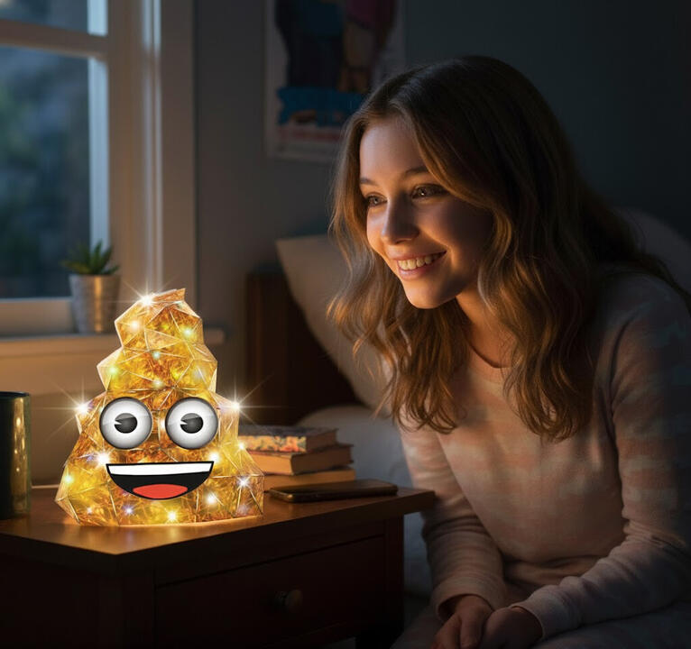 Prismic Emoji Poo. SimplyCool. The Prismic Emoji Poo is the ultimate mix of laughter and light! Tweens and teens can build their own hilarious light-up poop emoji and proudly display it in their room. Its a craft that combines fun, creativity, and a glowing sense of humour all in one silly package. This DIY kit includes everything needed to bring the poop emoji to life – lightweight prismic panels, connecting pins, peel-and-stick accessories, and USB-powered LED string lights. Its easy to assemble and adds instant personality to any space.