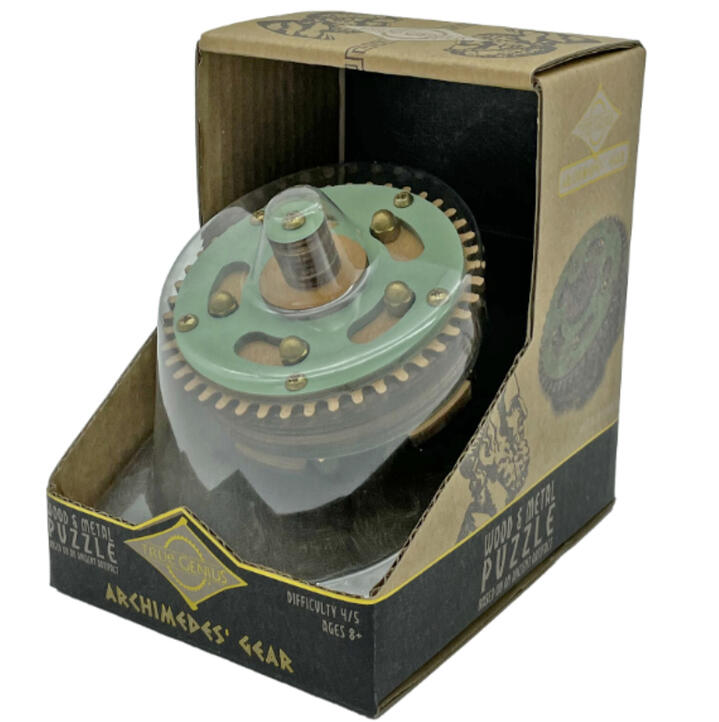 Project Genius Archimedes Gear Puzzle. Project Genius. Discover the brilliance of ancient mathematics with the Project Genius Archimedes Gear Puzzle! Inspired by Archimedes' precise engineering, this puzzle challenges you to unlock its secrets through a clever arrangement of interlocking gears and magnetic pins. Your task is to find the key that disengages the pins, allowing the gears to shift and separate. This puzzle offers a perfect blend of historical insight and modern-day ingenuity, making it a delightful challenge for puzzle enthusiasts.