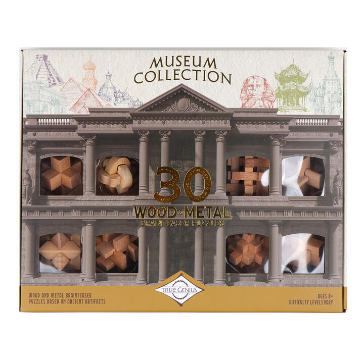 Project Genius Museum Collection 30 Wooden and Metal Puzzles. Project Genius. Give the gift of endless brain-teasing fun with the Project Genius Museum Collection. This deluxe set includes 30 unique puzzles, featuring 22 metal disentanglement challenges and 8 wooden take-apart puzzles. Each one offers a different level of difficulty, keeping hands and minds engaged for hours. Designed for puzzle lovers of all ages, this collection is perfect for friendly competitions or solo problem-solving.