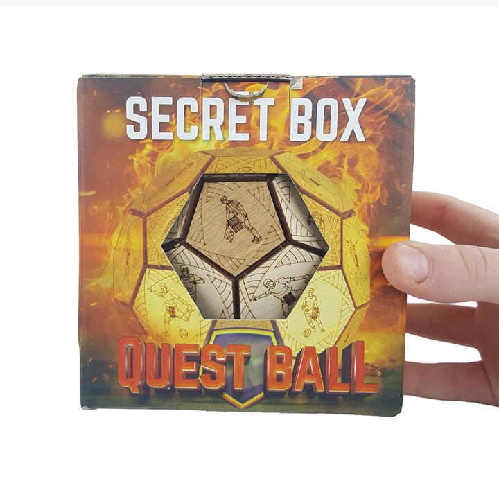 Quest Ball Secret Box. Escape Welt. The Escapewelt Quest Ball Secret Box is a handcrafted wooden puzzle that blends football artistry with the intrigue of escape room challenges. Made from natural birch with a polished finish, its both a captivating brain teaser and an elegant keepsake for puzzle enthusiasts and football fans. Featuring intricate designs inspired by football, including players, referees, and fans, the Quest Ball adds a touch of sporting spirit to your collection. Once solved, it reveals a hidden compartment perfect for storing small valuables, notes, or even a surprise gift for someone special.