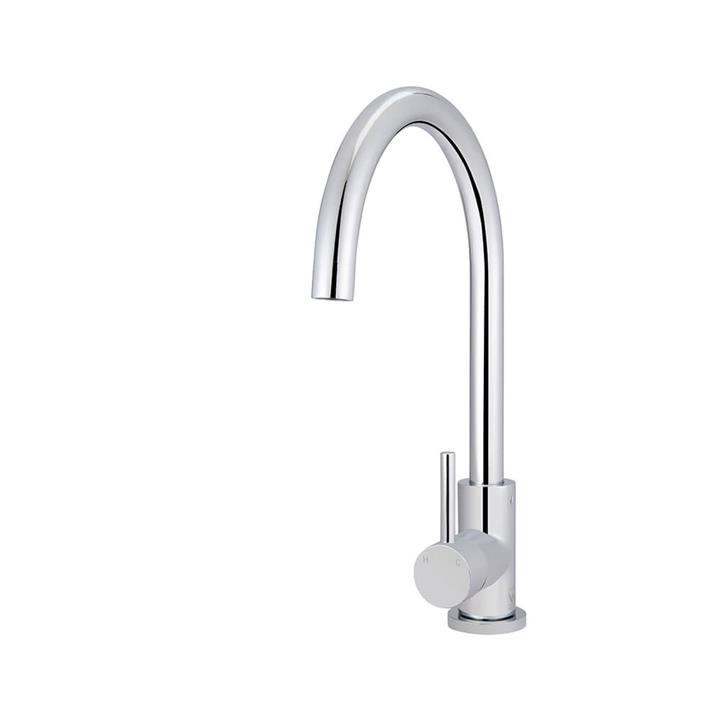 Meir MK03 Classic Chrome Kitchen Mixer Tap Whether you’re building or renovating your kitchen, it pays to choose a quality mixer tap that both looks beautiful and offers great functionality. The MK03 Round Kitchen Mixer Taps from Meir are the perfect combination of exceptional craftsmanship and designer finish. The curved gooseneck design provides enough space for dishwashing, while the easy-to-control pin lever allows for a perfect hot and cold balance. RELIABLE – The DR brass construction is rust-proof, corrosion-resistant, and will last long despite frequent usage VERSATILE – Polished chrome is a timeless finish perfect for both modern and classic homes PRACTICAL – Gooseneck spout with 360-degree swivel enhances functionality—suitable for both single and double sinks, and above-counter basins CONVENIENT – Easily switch between hot and cold water temperatures with a smooth turn of the lever even when your hand is full QUALITY – Premium 35mm ceramic cartridge ensures accurate and smooth water flow Specifications Model: Meir MK03-C Height: 353mm Depth: 244mm Base to Nozzle: 237mm Composition: Solid brass Finish: Electroplated polished chrome Spout: Gooseneck Mixer Lever Position: Mounted front or either side Swivel: 360 degrees Cartridge: 35mm ceramic cartridge Required Benchtop Thickness: 45mmMax. Operating Pressure: 500kPa Watermark Approved: Certified under AS/NZS 3718:2005 WELS Rated: 5 Star, 6 litres per minute flow restrictor installed in accordance with AS/NZS 6400 WELS Registration: T36451 WELS Registered Model Name: Kitchen Mixer MK03