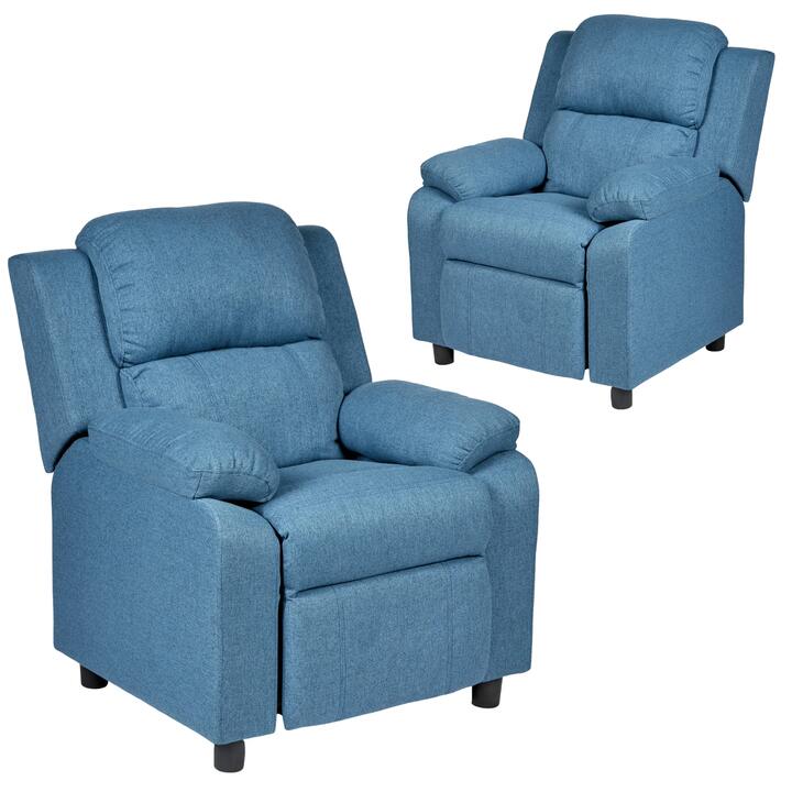 Set of 2 Erika Blue Kids Recliner Sofa Chair Blue Lounge Couch Armchair Childrens