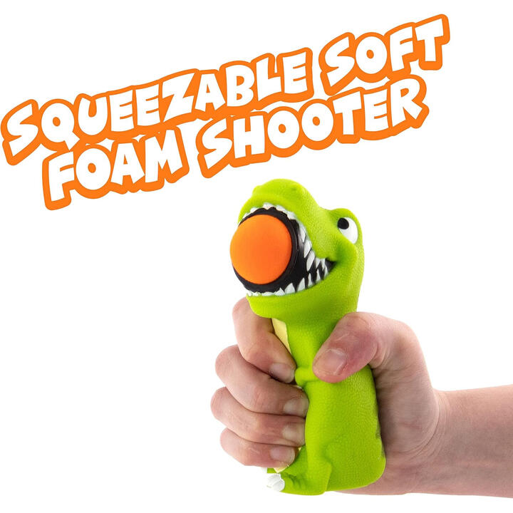 T Rex Popper. Hog Wild. The T Rex Popper is a silly and energetic gift that gets kids moving fast. This soft dinosaur launches foam balls up to 6 metres with one quick squeeze of its belly. Load the foam ball into the mouth, aim, and squeeze. The air powered design makes it simple for kids to use while they practise their aim and challenge friends. The 4 x soft foam balls make it safe for indoor play and just as fun outdoors. It helps build coordination while keeping play lively and active.