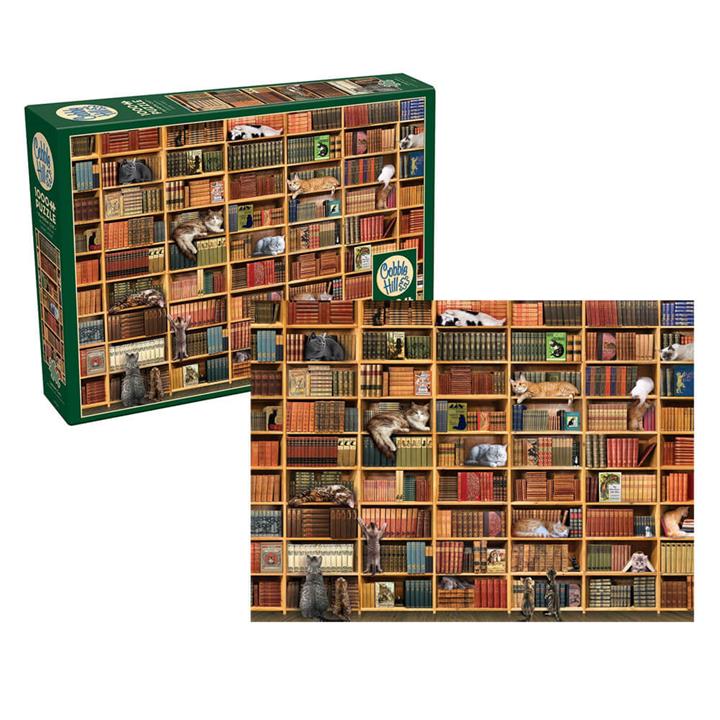 The Cat Library 1000pc Jigsaw Puzzle. Cobblehill. Sit back and relax with your feline friends with a puzzle that's as cool as a cat! The Cat Library 1000pc Jigsaw Puzzle features a family of comfortable library cats, lounging about the books. You'll find all your favourite breeds lolling across the shelves, it's the purrfect puzzle for cat lovers!