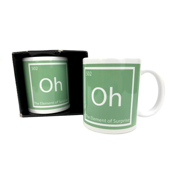 The Element of Surprise Mug. SimplyCool. Typically described as the unexpected or surprising nature of something, the element of surprise has been given the scientific symbol "Oh". Often pronounced "Ohhhh…" when making a shocking or unexpected discovery, this Element of Surprise Mug is perfect for your science lair!