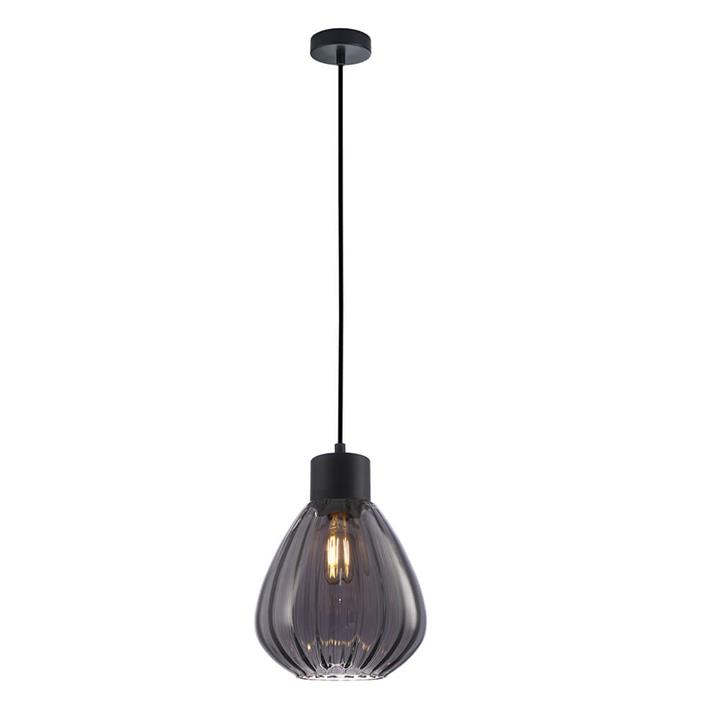 Tulip Interior Ribbed Glass Pendant Light – Matte Black / Smoked
