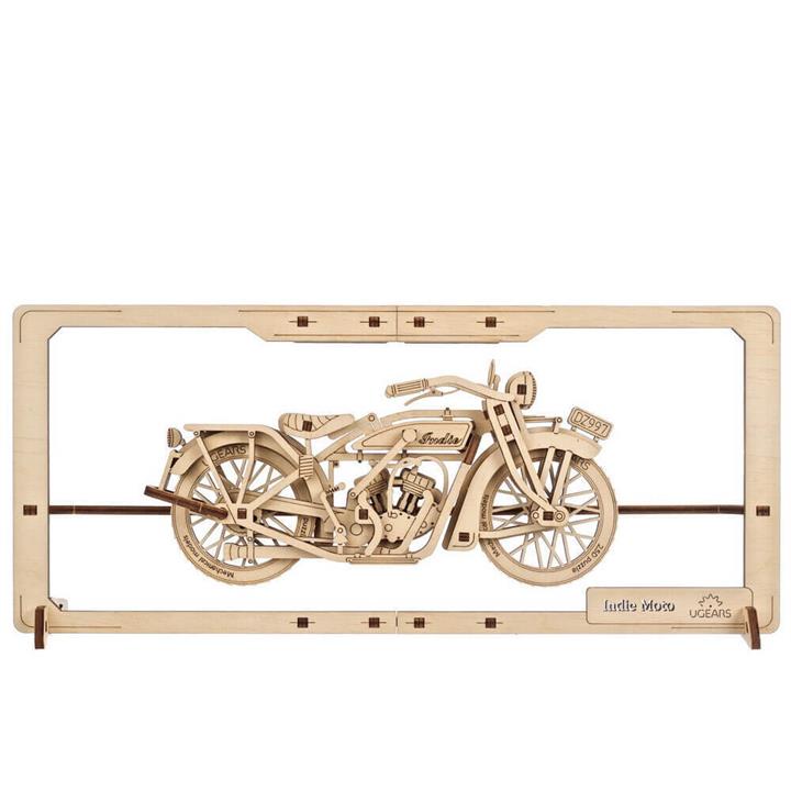 UGears Indie Moto 2.5D Wooden Puzzle Kit. UGEARS. The UGears Indie Moto 2.5D Wooden Puzzle Kit is part of the new classic vehicle collection by UGears! Unlike static framed pictures or a mounted wall puzzle, this interactive model lets you turn the handle bars, spin the wheels, lower the footrest or adjust the seat! To build your motorbike model, pop out the laser-cut wooden pieces and snap them together as directed. No glue or special tools required!