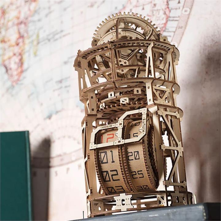 UGears Sky Watcher Tourbillon Table Clock. UGEARS. Build your very own wooden clock that keeps accurate time with the spring-loaded UGears Sky Watcher Tourbillon Table Clock! This fascinating mechanical contraption is a combination of a functional table clock, and an imaginative celestial observatory! Rather than using a standard clock face with hands, your 3D model includes a time display placed on reels, making it a really cool addition to any office space!