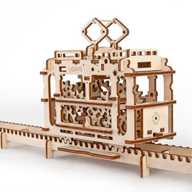 UGears Tram on Rails. UGEARS. This cool UGears Tram on Rails was inspired by the earliest streetcars and funiculars and is probably the one of the most romantic model in our UGEARS catalog. In addition to displaying a great deal of retro flair, the Tram can actually travel on its included adjustable tracks.