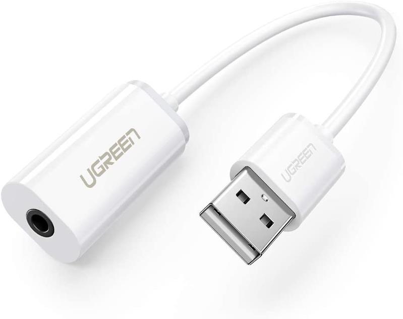 UGREEN USB Sound Card External Converter, USB Audio Adapter with 3.5mm Aux Stereo for Headset, PC, Laptops, Desktops, PS4, Windows, Mac, and Linux Features: Great Alternative Sound Card Ugreen USB Audio Adapter can easily add a 3.5mm TRRS port (integrated audio-in and audio out interface) to your PC through an available USB interface. It can bypass the defective sound card or the faulty 3.5mm audio port of your laptop/desktop system and regain the audio function for you. Save the cost of replacing a failed sound card. Specifications Computer Connector: USB 2.0 Male Headset Connector: 3.5mm TRRS Female Cable Length:15cm Chipset: ALC4042 System requirements * Windows 10/8.1/8/7/Vista/XP * Mac OS 8.6 or above * PS5/PS4 Important Note: For using with PS5/PS4, the output sound for Left and Right chanel will be Reversed as the sound sampling rate of our audio adapter(192K/24BIT) is higher than their Compatibility(48K/16BIT). Warm Tips 1. This USB sound adapter is designed for your new headset with 3.5mm TRRS interface. It does not work with headset with separate headphone and microphone 3.5mm audio port. 2. The USB interface on PS3 does not carry audio signal, so this usb audio adapter does not work with PS3. Package Content 1 x UGREEN USB A Male to 3.5 mm Aux Cable (White)