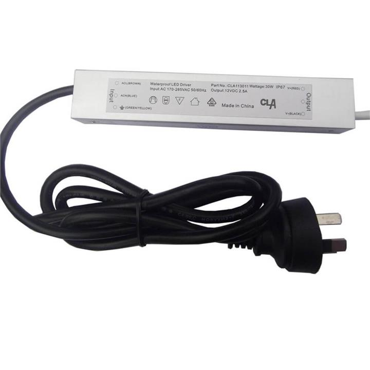 Efficient LED Driver for Garden Lights Protect your outdoor LED lights from sudden power surges and fluctuations with an LED Driver. This driver is waterproof with an IP67 rating, making it suitable for outdoor settings. It is built with a provision for hook or screw, which can be utilised in securing it in place—whether mounted on a wall or fixed on the ground. EFFICIENT- Maintains a 12V DC constant voltage and manages fluctuations SAFE – Designed to protect connected LED units from short circuits, overloads, and over temperature WATERPROOF – IP67 rated, suitable for outdoor and garden applications CONVENIENT – Flex & plug included PEACE OF MIND – Backed with a 2-year manufacturer replacement warranty Driver can be used: At full load capacity by connecting all cables to one terminal block With any combination of split cables (as long as the minimum and maximum loads are adhered to) NOTE: FULL load capacity CANNOT be connected to one cable Specifications Dimensions: 182mm x 30mm x 20mm (L x W x H) Current: 2.5A Wattage: 30W Load: 3-24W Min. load per cable: 3W Max. load per cable: 24W Output Voltage: 12V DC Input Voltage: 170-265V AC 50/60Hz AC Current: 0.15A/240V AC Efficiency: > 82% Protections: Short circuit/overload/over temperature Ambient Temp: -30 to 50°C Flex & Plug: Included IP Rating: IP67 SAA Compliance: SAA-192361-EA 100% full load burn-in test Must be installed by a licensed electrician. Installation instructions sheet is provided in the product box.